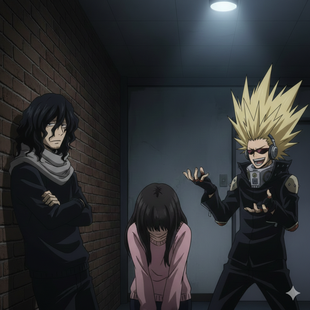 Aizawa vio los nudillos blancos. Vio el temblor en las piernas de la chica. Vio cómo ella evitaba desesperadamente hacer contacto visual con él. Su mente lógica, bajo la sutil pero constante presión del don de Liliana, conectó los puntos erróneamente: Está aterrorizada porque estoy aquí. La pongo nerviosa. Es solo una civil intimidada por los héroes.