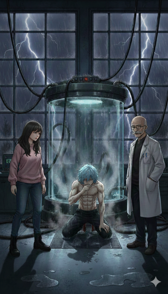 La noche que el proceso terminó, la tormenta azotaba los ventanales del laboratorio secreto. El líquido del tanque comenzó a drenarse. Los cables se soltaron con siseos de vapor.